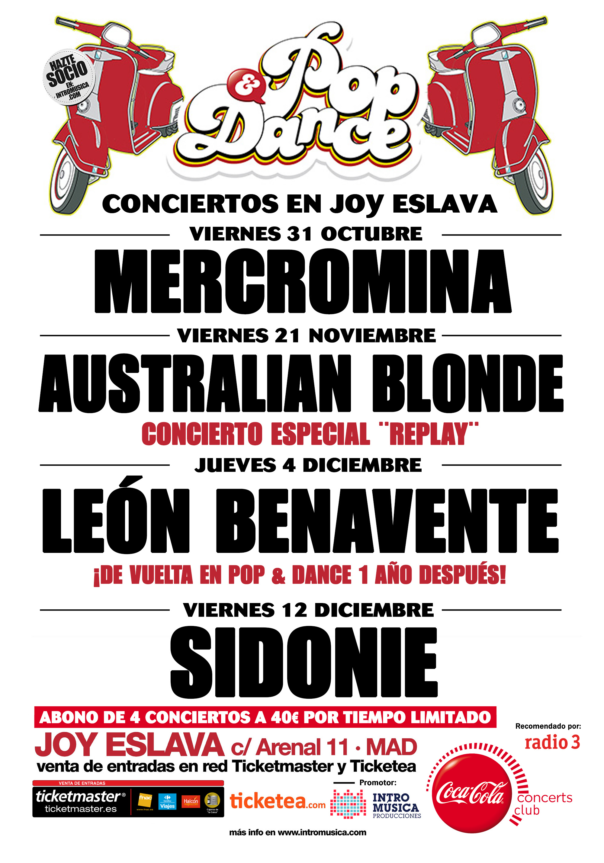 La sala Joy Eslava de Madrid repite con el ciclo de conciertos Pop&Dance, que vuelve esta temporada con las actuaciones únicas de Australian Blonde, León Benavente y Sidonie.