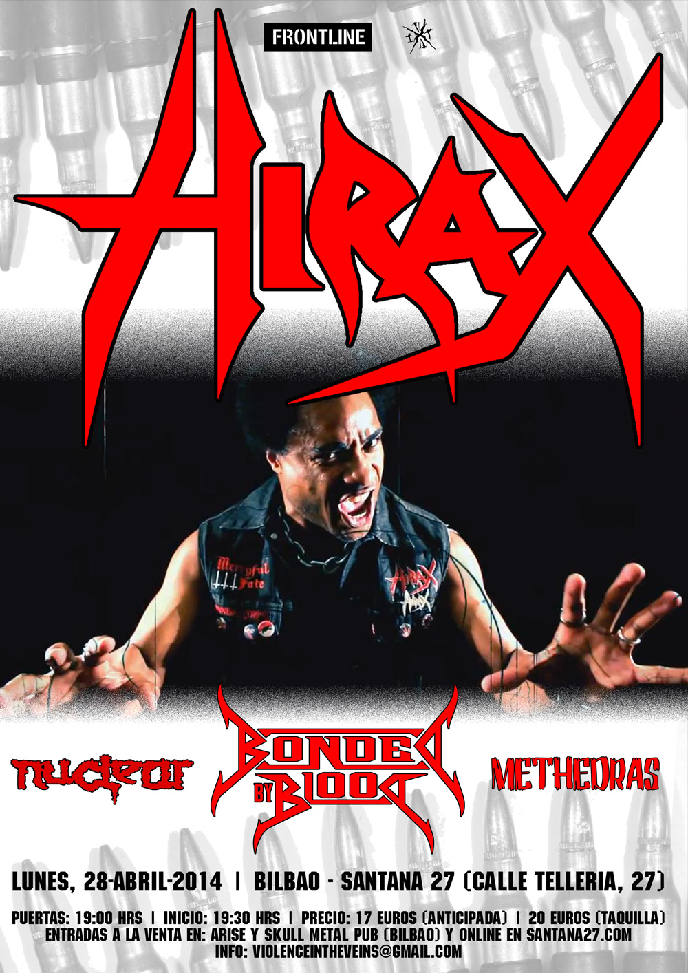Hirax estarán acompañados de sus compatriotas Bonded By Blood, banda de la nueva generación de thrash metal clásico, además de los chilenos Nuclear y los italianos Methedras, igualmente grupos alineados dentro de los perfiles del thrash metal.